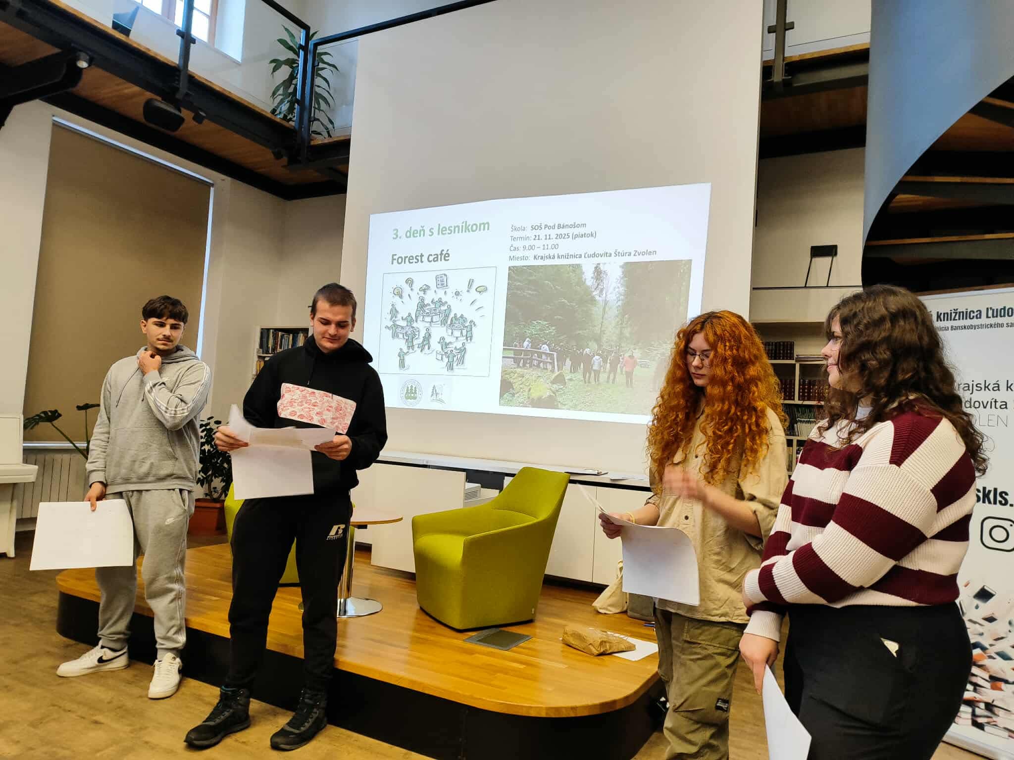 V dňoch 12. – 25. novembra sa uskutočnil 3. deň s lesníkom v rámci projektu LESU ZDAR, známy pod názvom Forest Café. Študenti sa stretávali v útulnej atmosfére kaviarní – skutočných aj simulovaných – aby mohli nerušene diskutovať, prezentovať vlastné názory a zároveň si dopriať priestor na oddych. Spoločne s lesnými pedagógmi sa púšťali do zaujímavých lesníckych tém, odhaľovali fakty a mýty v lesníctve, porovnávali rôzne pohľady a hľadali riešenia či kompromisy pri aktuálnych výzvach. V debatách sa ukázala potreba pristupovať ohľaduplne k lesu a jeho obyvateľom. Pri otázkach ťažby dreva si študenti overovali fakt, že v lesoch sa menej dreva vyťaží ako prirastie. Porozmýšľali spoločne ako sa sami môžu angažovať na zlepšení životného prostredia vo svojom bezprostrednom okolí. Diskusie vyústili do tvorivých výstupov, v ktorých študenti uplatnili aj svoje kreatívne grafické zručnosti. Na papieri tak vznikli milé, vizuálne nápadité odkazy pre les a ľudí, ktorí sa oň starajú. Nechýbali medzi nimi aj povzbudivé mottá: